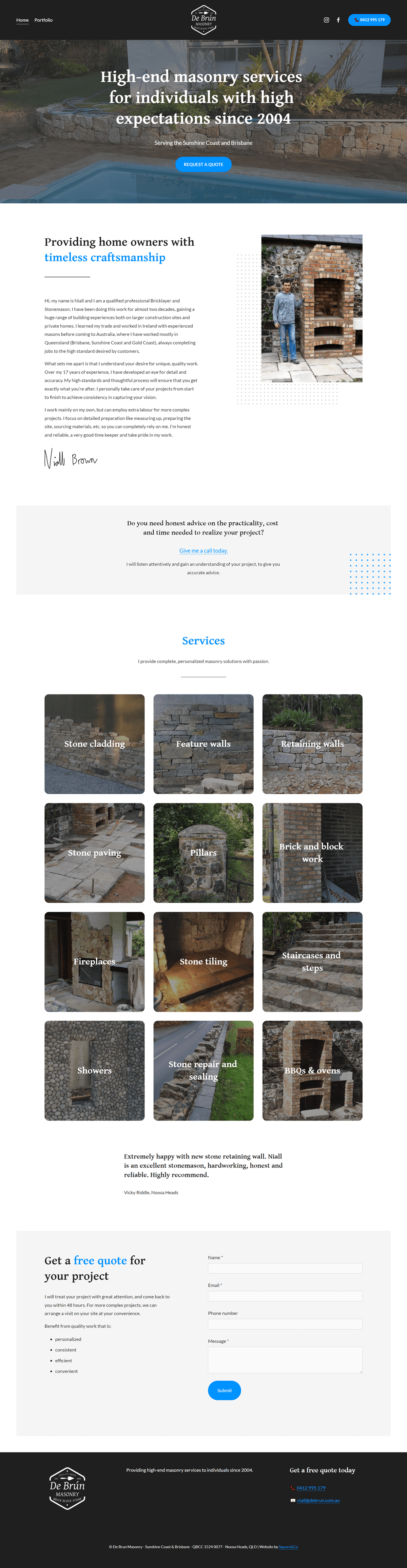 Niall Brown, the owner of De Brún Masonry, provides high-end masonry services to home owners on the Sunshine Coast and in Brisbane.